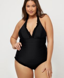 Grote Maten neckholder badpak, Dames, zwart, Maat: 60, Synthetische vezels/Elastaan, Ulla Popken