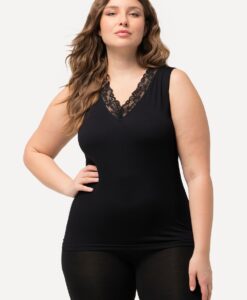 Grote Maten Onderhemd, Dames, zwart, Maat: 42/44, Viscose/Synthetische vezels/Elastaan, Ulla Popken