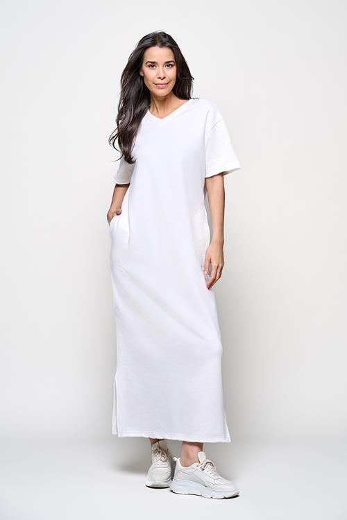 Offwhite sweatjurk met korte mouwen en borduurdetailDe Ella sweatjurk van Caroline Tensen is uitgevoerd in een prachtige offwhite kleur met een subtiel borduurdetail op de rugin glansgaren. De Ella…
