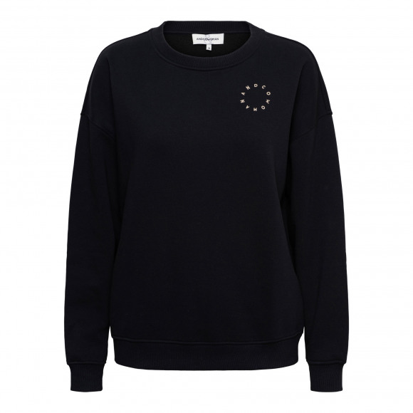 Sweater van &Co Woman. Deze comfortabele sweater heeft een relaxte pasvorm met een ronde hals en ribboorden. Op de borst staat subtiel het &Co Woman-logo, terwijl de achterkant een speelse eyecatcher heeft: een cirkelprint met de merknaam die een moderne en stoere uitstraling geeft. Verkrijgbaar in tijdloos zwart en fris off-white.