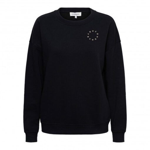 Sweater van &Co Woman. Deze comfortabele sweater heeft een relaxte pasvorm met een ronde hals en ribboorden. Op de borst staat subtiel het &Co Woman-logo, terwijl de achterkant een speelse eyecatcher heeft: een cirkelprint met de merknaam die een moderne en stoere uitstraling geeft. Verkrijgbaar in tijdloos zwart en fris off-white.