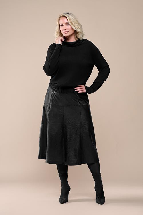 Elegante leren rok in zwart De Delilah rok in zwart is een prachtig uitgevoerd model in 100% leer, met een vrouwelijke belijning en een verfijnde, gerende pasvorm. Deze elegante leren rok valt over…