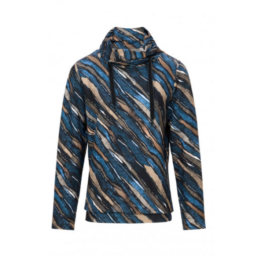 Top van Dreamstar. Deze top is uitgevoerd in een opvallende blauw- en bruinmix met een speels streeppatroon. De comfortabele pasvorm en de colkraag met aantrekkoord geven het item een sportieve én vrouwelijke uitstraling. De zachte, soepele stof maakt dit een heerlijk draagbare top die zowel casual als modieus te combineren is.
