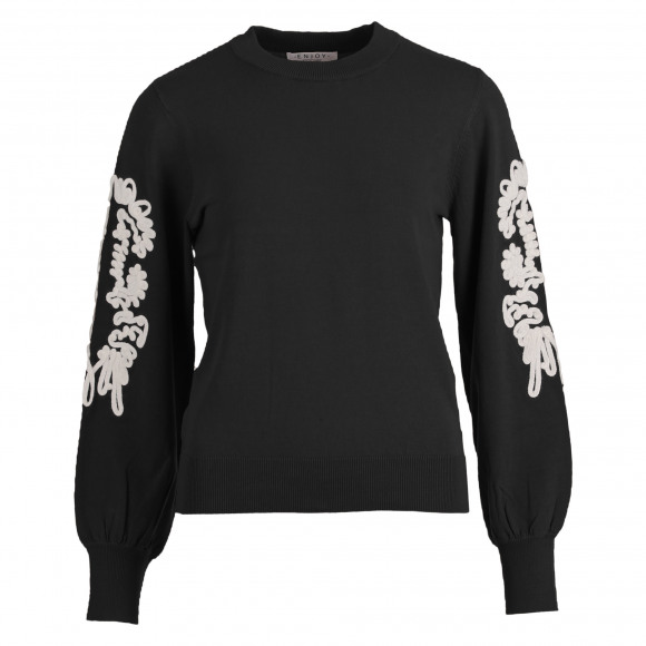 Fijn gebreide trui met borduurdel op de mouwen van het merk Enjoy.