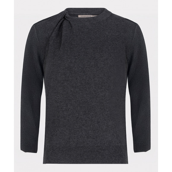 Top van Esqualo. Deze donkergrijze gebreide top heeft een elegante, minimalistische uitstraling met een verfijnd detail: een subtiele striksluiting bij de hals. De driekwartmouwen en de zachte ribstructuur zorgen voor een comfortabele pasvorm en een tijdloze look.