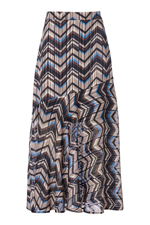 Kleurrijke lange rok met printDe Ethan print rok zal ervoor zorgen dat alle ogen op jou gericht zijn. Deze trendy rok heeft een uniek zigzag dessin met glinsterend lurex draad, wat zorgt voor een s…