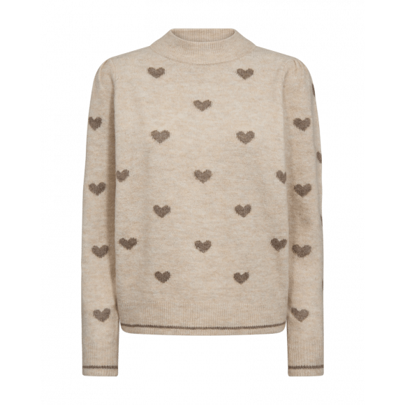Pullover van Freequent. Deze trui met all-over hartjes is een speelse en toch stijlvolle toevoeging aan je garderobe. De zachte gebreide kwaliteit en comfortabele pasvorm maken dit item ideaal voor een cozy en modieuze look op frisse dagen.