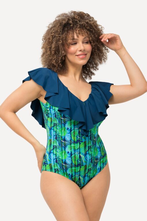 Grote Maten Badpak, Dames, turquoise, Maat: 52, Synthetische vezels/Elastaan, Ulla Popken