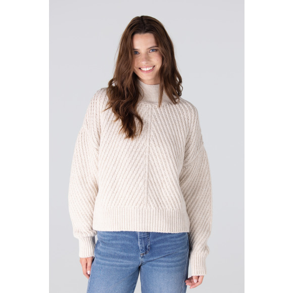 * Details: diagonale ribstructuur, brede boorden, licht ballonmouw