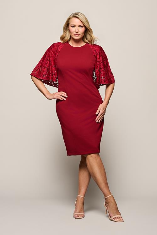 Couture geïnspireerd: bordeauxrode jurk met kanten cape van Mart Visser De bordeauxrode Kate jurk van Mart Visser is een tijdloos elegante jurk voor dames waarin verfijning en d…