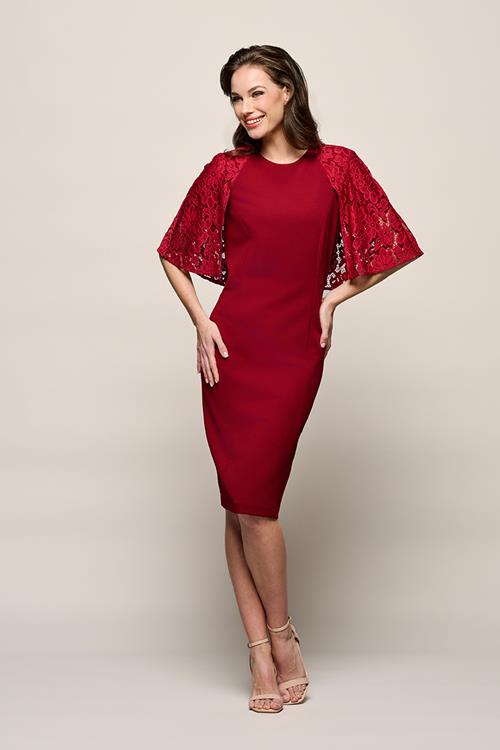Couture geïnspireerd: bordeauxrode jurk met kanten cape van Mart Visser De bordeauxrode Kate jurk van Mart Visser is een tijdloos elegante jurk voor dames waarin verfijning en d…