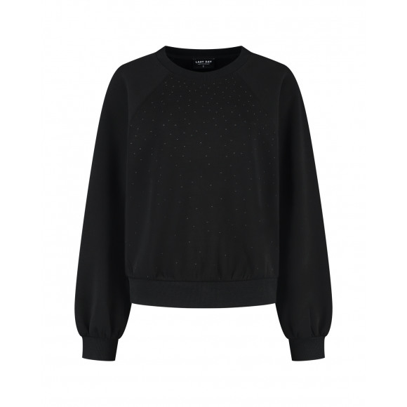 Sweater van Lady Day. Deze zwarte sweater combineert een sportieve uitstraling met een vleugje glamour. De subtiele glanssteentjes aan de voorzijde geven het item een stijlvolle sparkle, terwijl de zachte stof met stretch zorgt voor ultiem draagcomfort. De ronde hals en brede boorden maken het ontwerp tijdloos en makkelijk te combineren.