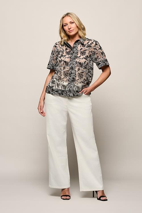 Offwhite wide leg jeans met hoge taille en moderne uitstralingDe Livia denim broek in offwhite is een stijlvolle wide leg jeans met een frisse en moderne uitstraling. Deze 5-pocket jeans combineert…