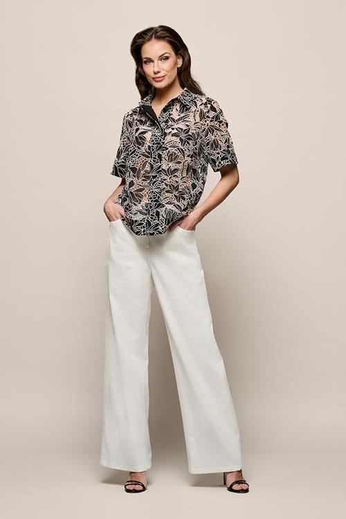Offwhite wide leg jeans met hoge taille en moderne uitstralingDe Livia denim broek in offwhite is een stijlvolle wide leg jeans met een frisse en moderne uitstraling. Deze 5-pocket jeans combineert…