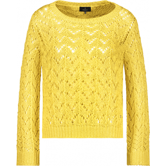 Gehaakte trui pullover van het merk Monari. Dit truitje heeft een lange mouw en ronde hals. Leuk te combineren over een witte top op een een witte jeans.