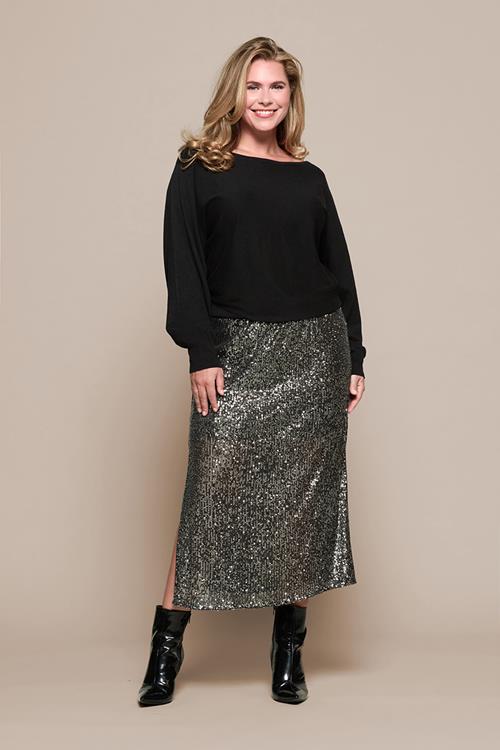 Prachtige grijs/groene pailletten midi-rok van Mart VisserDe grijs/groene pailletten midi-rok van Mart Visser is een elegante keuze voor een stijlvolle en feestelijke look. Deze knielange rok is vo…