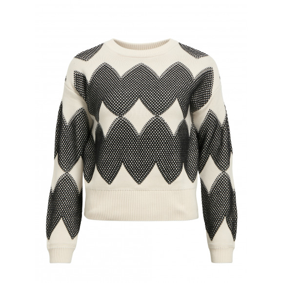 * Details: grafisch zwart wit patroon, ribboorden aan hals, zoom en manchetten, zachte knit