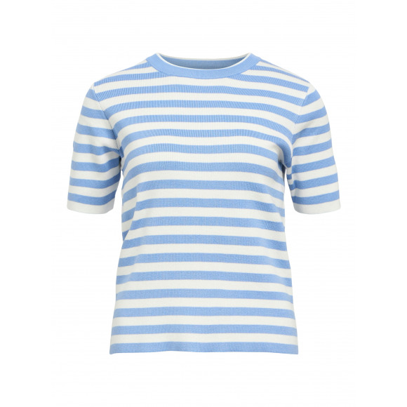 Fijngebreid truitje van het merk Object. Dit truitje heeft een streepdessin, ronde hals, korte mouwen en een regular fit.