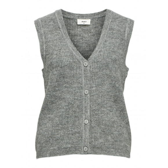 Gebreide spencer van Object. Deze grijze spencer is een veelzijdig en modern item dat je eindeloos kunt combineren. Het mouwloze ontwerp en de V-hals geven een eigentijdse uitstraling, terwijl de grove ribstructuur zorgt voor een stoere touch.