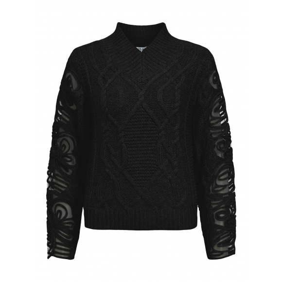 Trui van Object. Deze zwarte trui is een echte blikvanger dankzij de bijzondere mouwen met opengewerkt breisel en transparante meshdetails. Het grofgebreide kabelpatroon aan de voorzijde geeft een stoere, eigentijdse uitstraling, terwijl de zachte stof zorgt voor heerlijk draagcomfort.