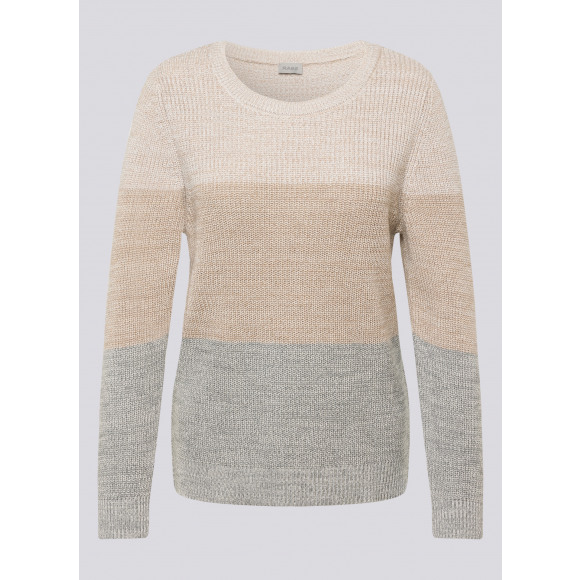 Trui met lurex glansdraadje van Rabe. Deze grofgebreide trui met kleurblokken in zachte, natuurlijke tinten is een heerlijk item voor het nieuwe seizoen. De lichte beige, zand en grijstonen geven een rustige en moderne uitstraling. De rechte pasvorm en ronde hals zorgen voor een comfortabele en tijdloze look, perfect voor elke dag.