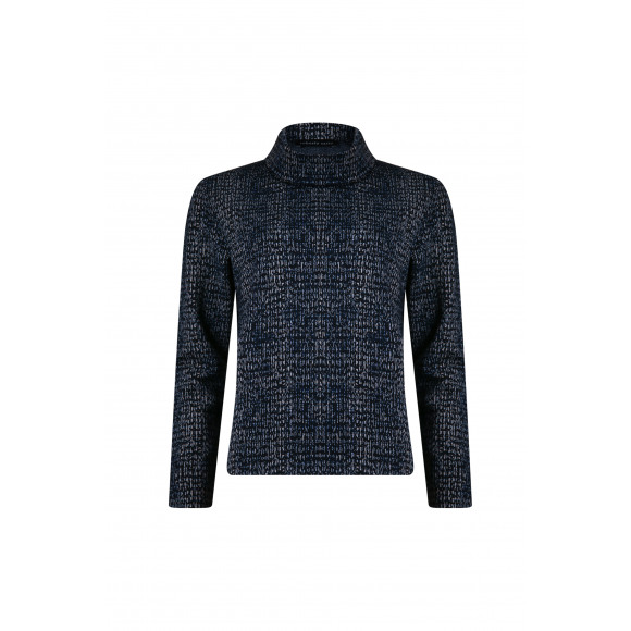 Top van Roberto Sarto. Deze top met lange mouwen heeft een opstaande col en een modern allover dessin in donkerblauwe en grijze tinten. Het rechte model in een zachte stretchkwaliteit zorgt voor een comfortabele en vrouwelijke pasvorm.