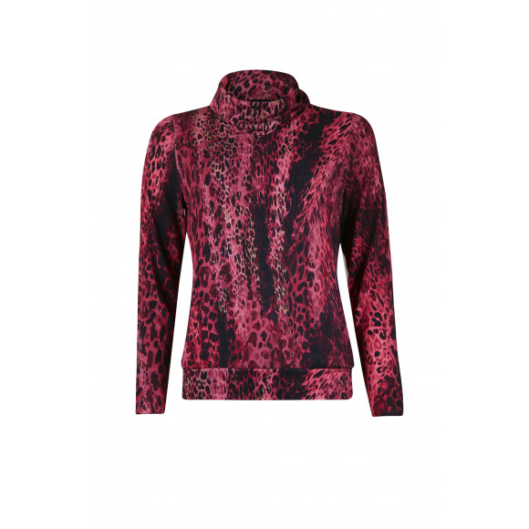 * Details: colkraag, animalprint in rood- en zwarttinten, lange mouwen
