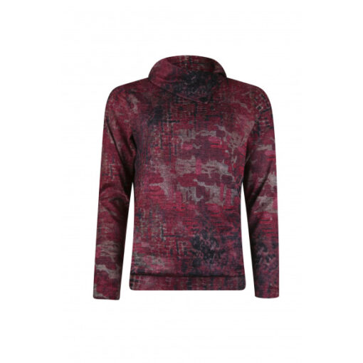 Top van Roberto Sarto. Deze top met lange mouwen is gemaakt van een soepele stretchkwaliteit en valt op door de artistieke allover print in warme rood- en zwarttinten. De hoge kraag met asymmetrische knoopsluiting zorgt voor een moderne, vrouwelijke uitstraling.