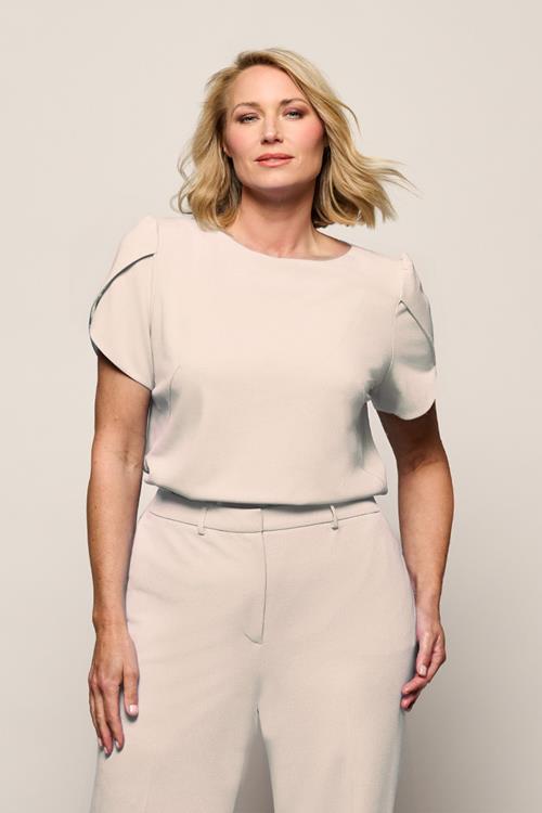 Een elegante crèmekleurige damestop met verfijnde details De Scarlet top van Mart Visser is een stijlvol ontwerp dat minimalistisch design combineert met subtiele de…
