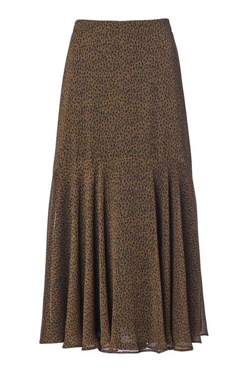 Groene animalprint rokDe semi-transparante stof van de Solange print rok zorgt voor een luxe uitstraling. Het model is soepel vallend en heeft een wijd uitlopende pasvorm. De extra stof aan de onde…