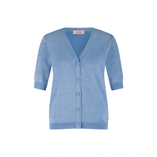 Fijngebreid vestje van het merk Studio Anneloes. Dit vestje heeft korte mouwen, een v-hals en knoopjes sluiting. Heerlijk zomers vestje die mooi te combineren is met een witte jeans of op een zwierige rok.