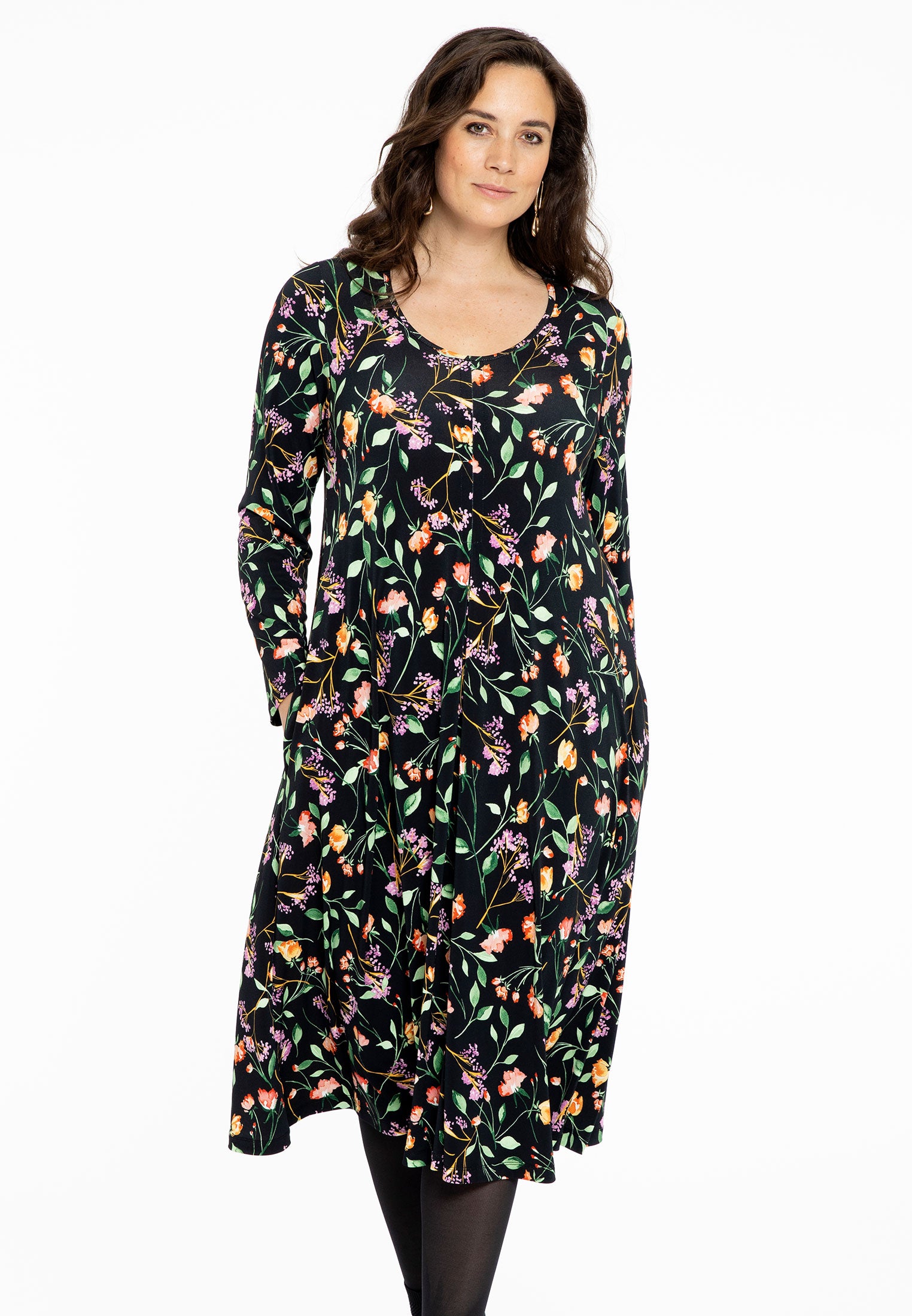 We stellen je graag voor aan dit fleurige winter item. De jurk is gemaakt van onze luxe dolce materiaal. Het item heeft een plooi aan de voorkant, zakken aan de zijkant en heeft een wijde pasvorm.