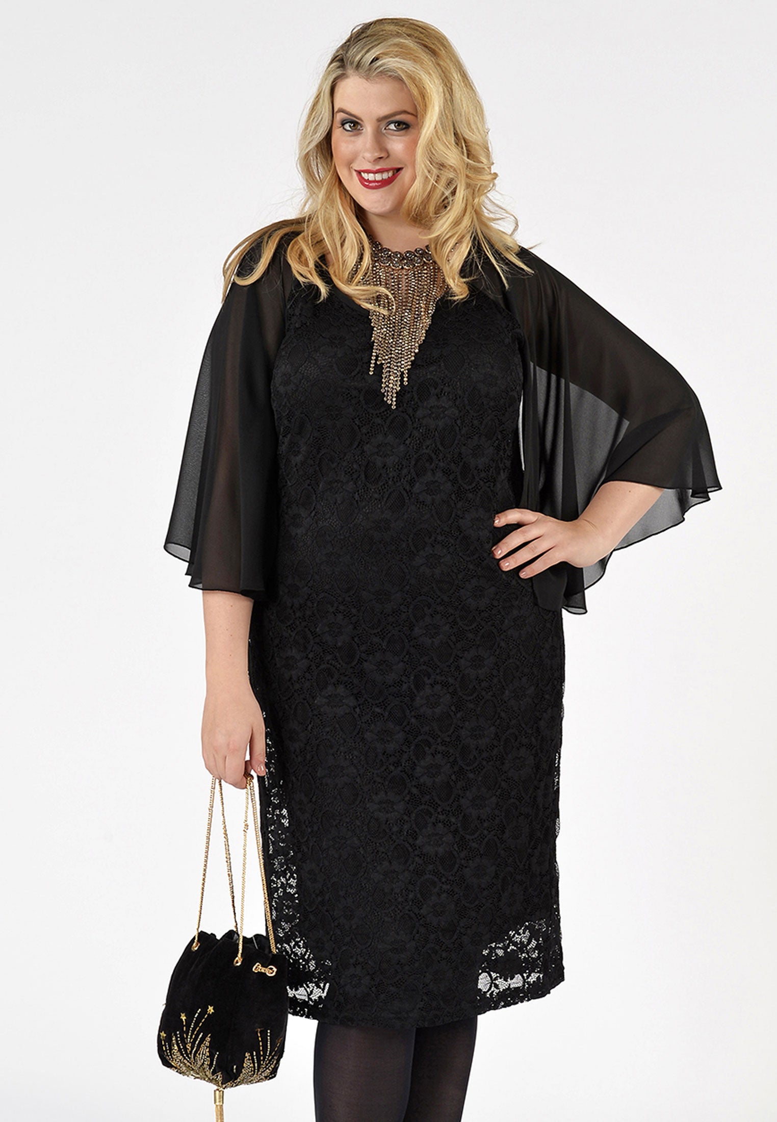 Yoek Kanten jurk met mouwen | Zwart | Maat XXL