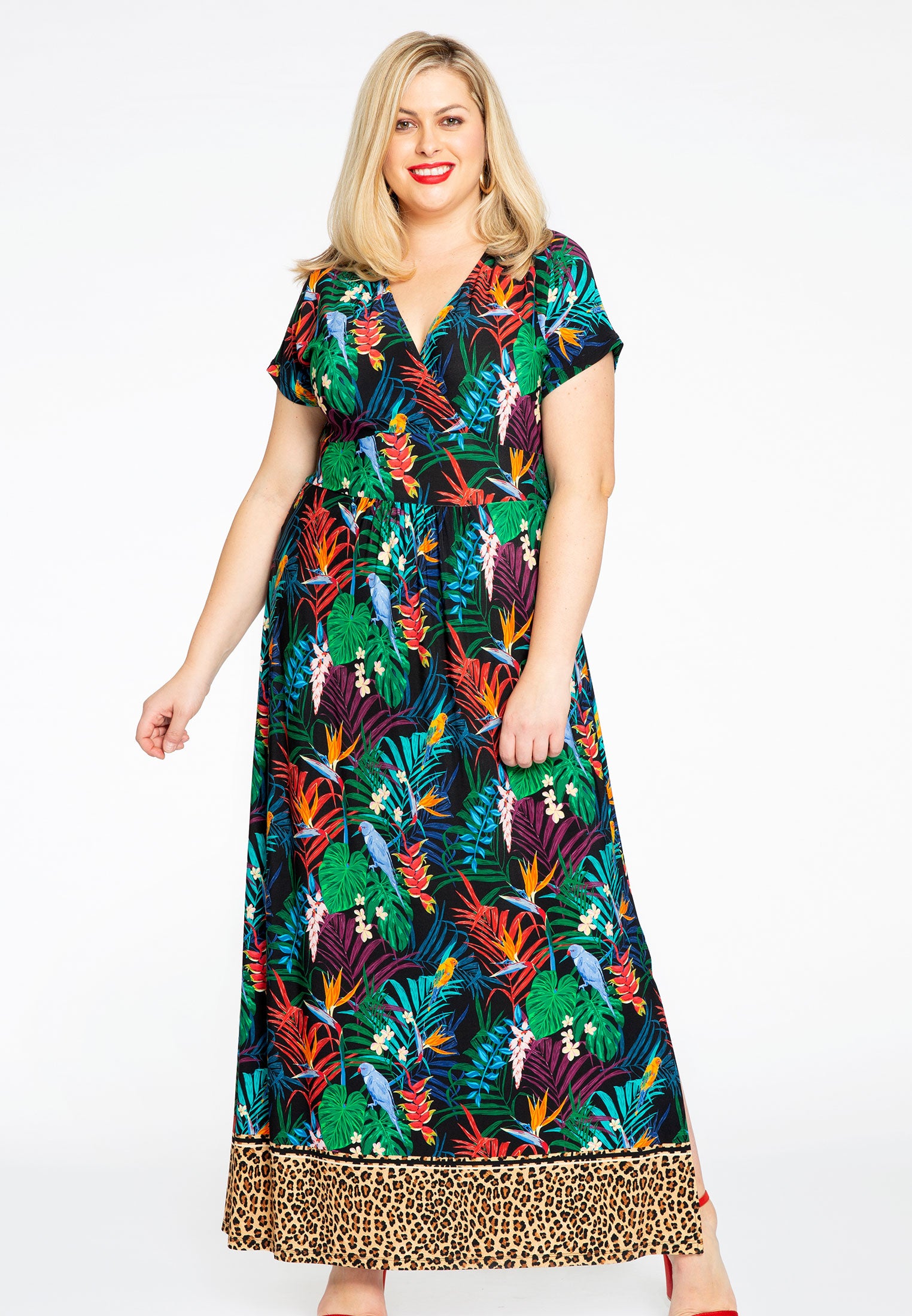 Yoek Lange jurk PARADISE LEO | Multi | Maat 54/56