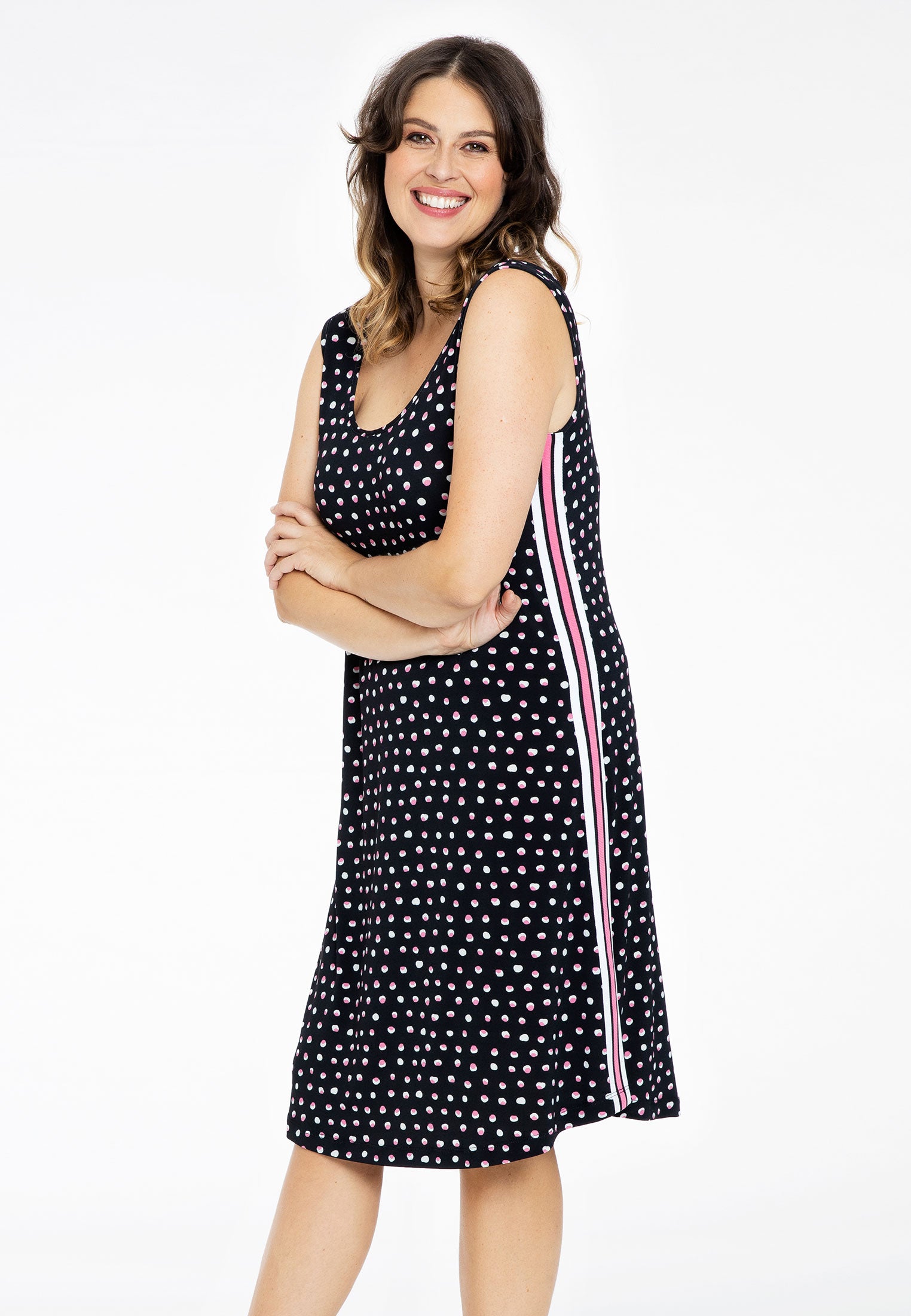 Yoek Mouwloze jurk SPRINKLE stripe | Zwart | Maat 42/44