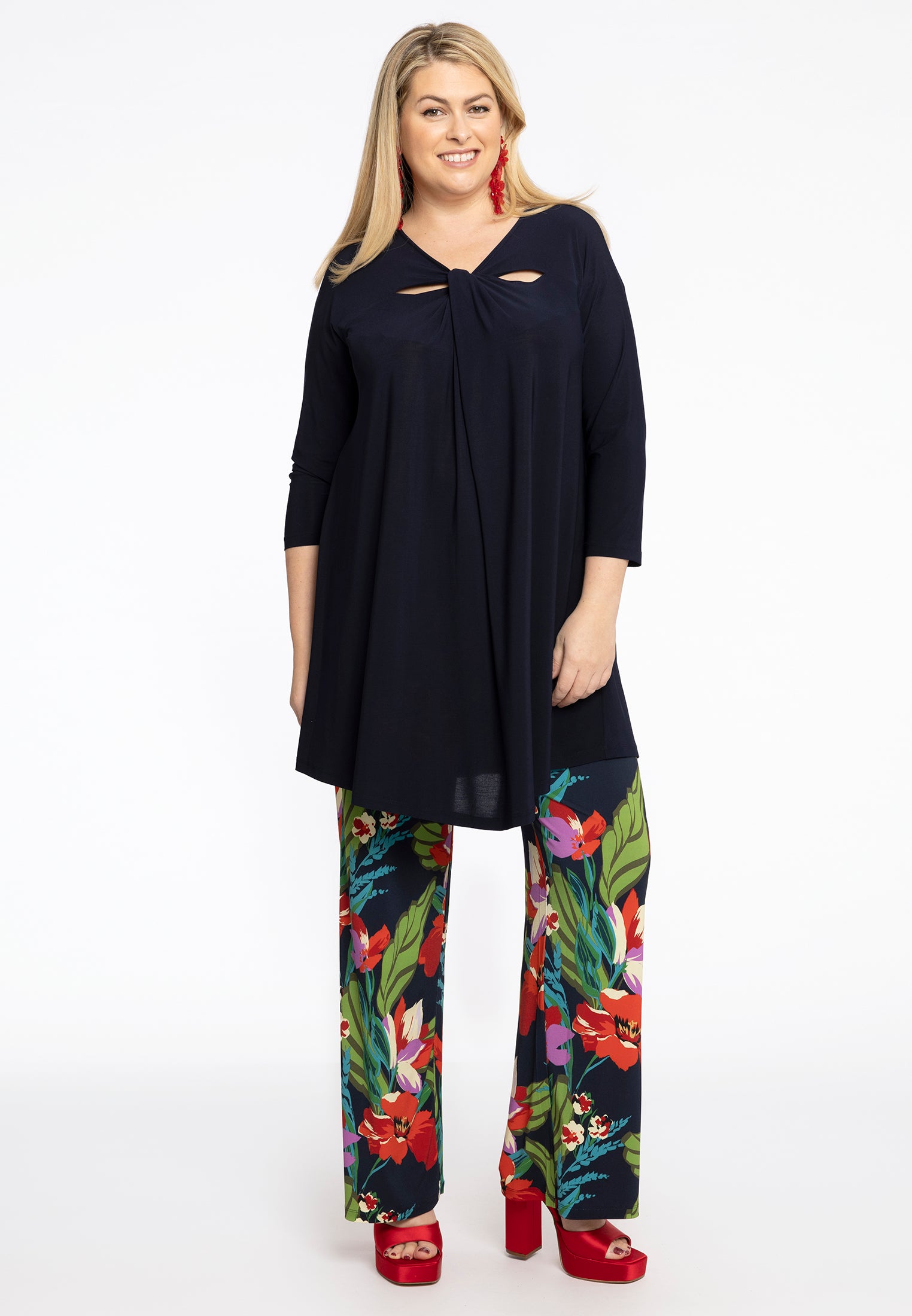 Deze broek fleurt je winteroutfit in een handomdraai op! Het is bedrukt met een kleurrijk bloemenpatroon en gemaakt van zacht en rekbaar dolce travel stof. De broek heeft een wijde maar toch rechte comfortabele pasvorm met een elastische tailleband.