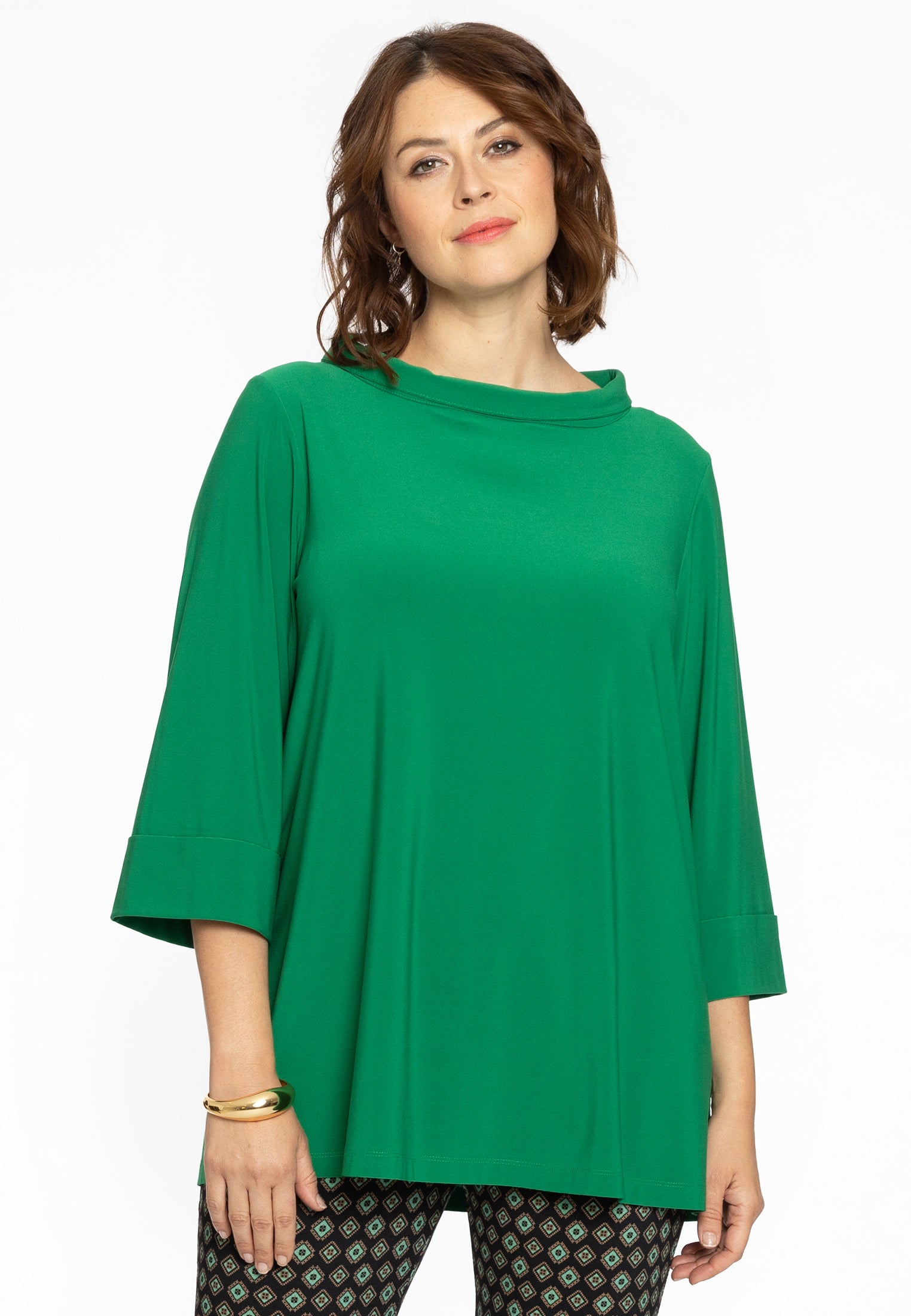 Yoek Shirt A-lijn met turtle neck | Groen | Maat 50/52