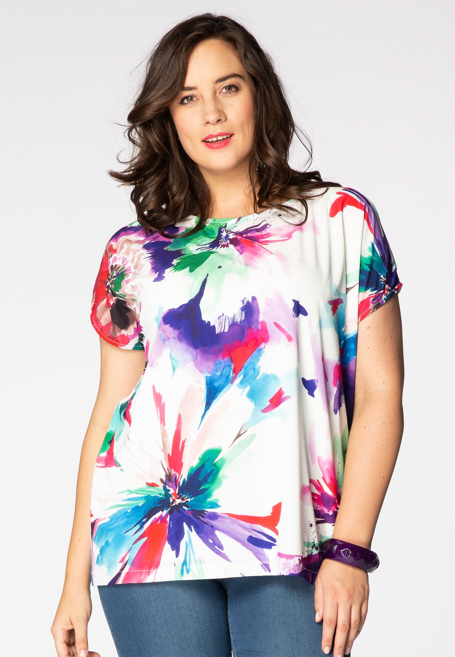 Een kleurrijk aquareldessin is precies wat je nodig hebt voor het nieuwe seizoen! Deze gevoerde top heeft korte mouwen en een wijde pasvorm.