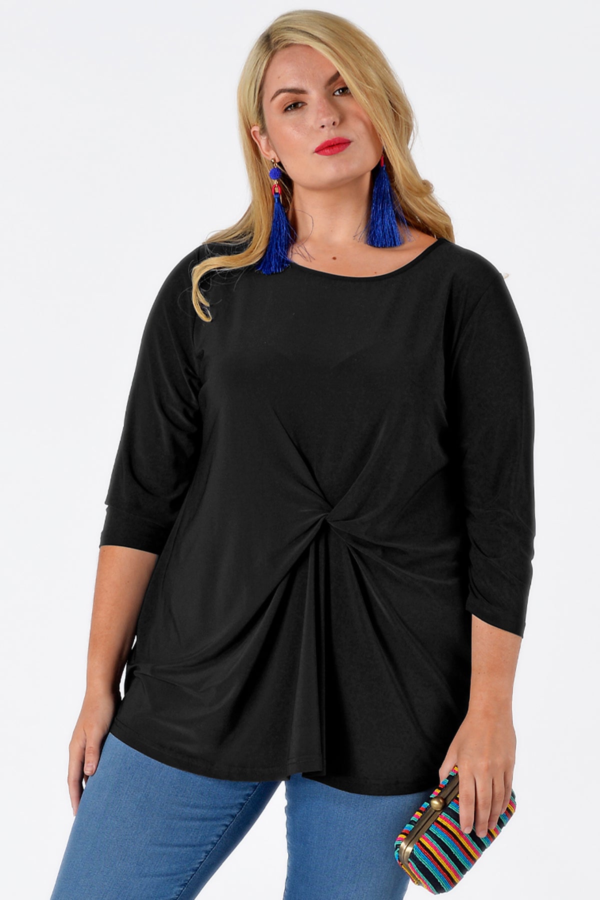 Een shirt in onze Dolce kwaliteit met een gedrapeerd knoopdetail aan de voorkant. Het shirt heeft halflange mouwen en is een comfortabel basic item dat voor iedere gelegenheid geschikt is.