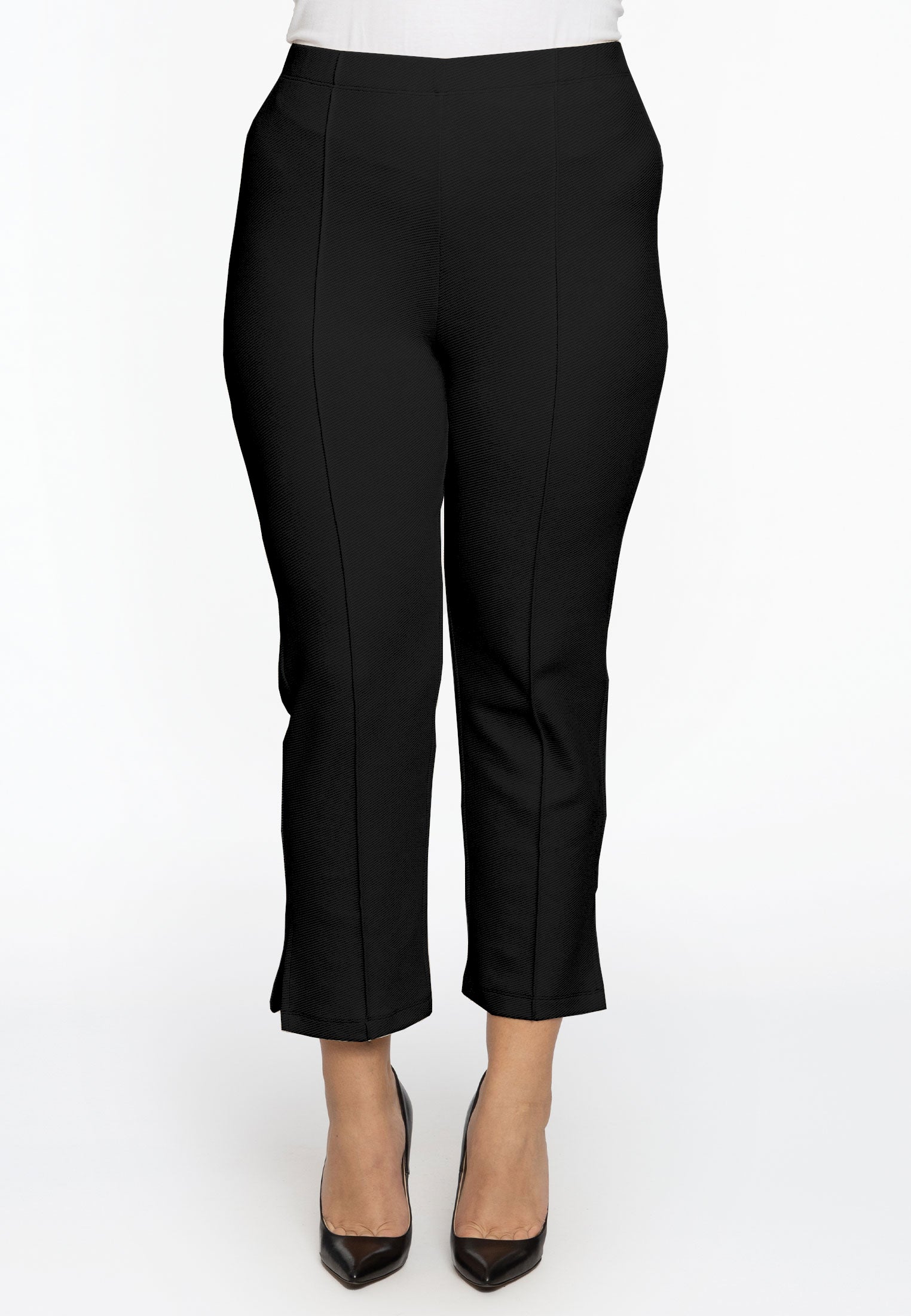 Maak kennis met deze elegante tregging, beschikbaar in twee kleuren, welke je voorziet van een chique look zonder dat je hoeft in te leveren op comfort. De aangesloten broek heeft kleine splitjes aan de zijkant, pintuck stiksels en is gemaakt van een viscose mix met een diagonale rib. Het heeft een zeven-achtste lengte, ook ideaal als je niet zo lang bent, en een elastische tailleband.