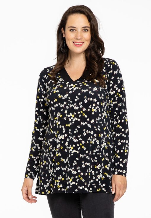 Yoek Tuniek flare DAISY | Zwart | Maat 46/48